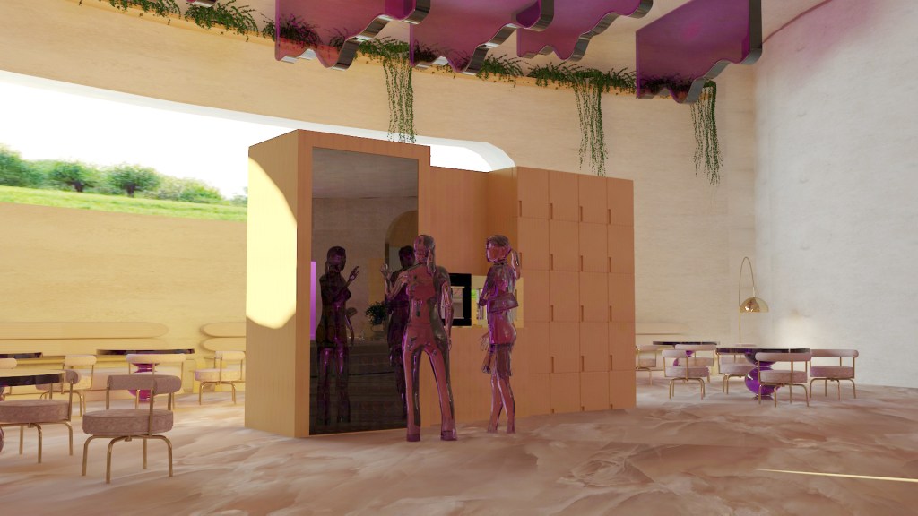 Designing a shopping center that uses technology as it’s dominant way of shopping inspired by iCloud the concept ‘clouds’ has been used to implement the design .